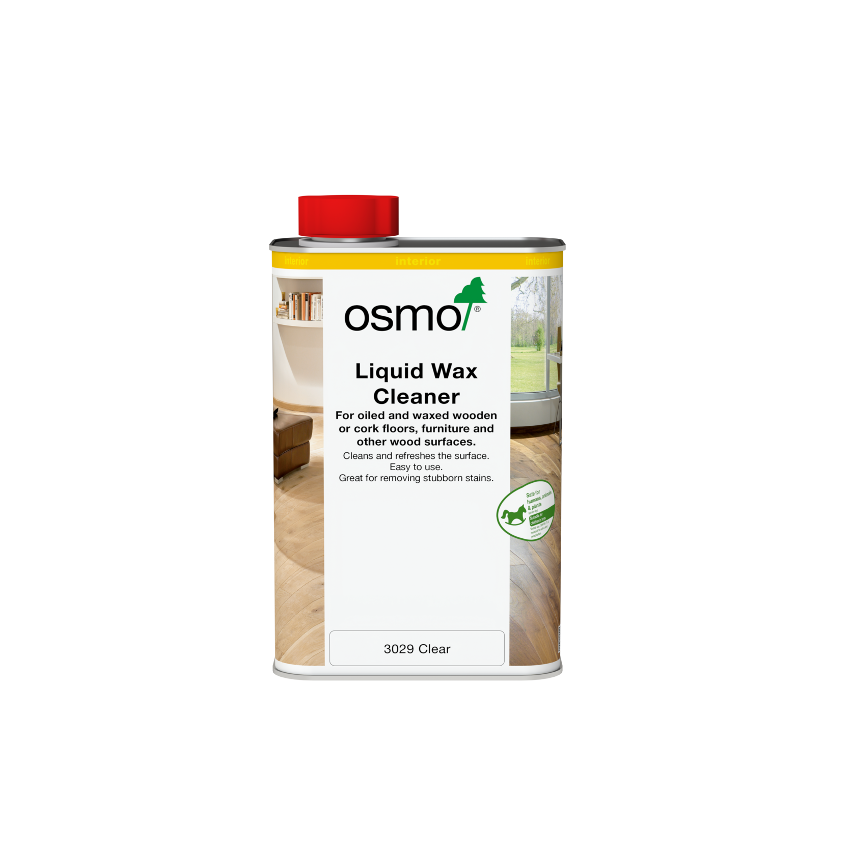 Liquid Wax Cleaner Clear is available in 500ml and 1 litre cans. They are available in a clear finish or white for use on surfaces finished with one of Osmo’s white oils.